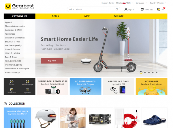 Zahraničný e-shop Gearbest je najväčším čínskym e-shopom na svete. Tento e-shop bol založený v roku 2007 v meste Shenzen. Vo svojej ponuke má viac ako 50 000 druhov tovaru, toto číslo sa naďalej zvyšuje. Priemerné mesačné zobrazenia stránky Gearbest dosahujú úroveň až 119 500 miliónov zobrazení.