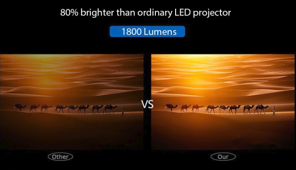Projektoru Alfawise A8 nechýba svietivosť na úrovni 1800 lumenov, životnosť lampy je na úrovni až viac ako 20 000 hodín. Nechýba VGA port, alebo HDMI port, USB port pre prehrávanie videí, alebo fotiek z USB kľúča. Projektor má aj vlastný operačný systém s možnosťou inštalácie aplikácii z Google Play Store. Výhodou projektora je, že obsahuje aj integrovaný reproduktor. Veľkosť uhlopriečky projektora je na úrovni až 254 cm.