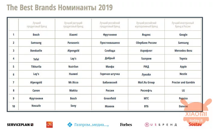Organizátori odovzdali celkovo päť ocenení, jedno za „najlepšiu značku“, „značku s najväčším rastom“, „najlepšiu ruskú značku“, „najlepšiu spoločnosť“ a „najlepšiu zahraničnú značku v Rusku“. Xiaomi získala cenu za najrýchlejšie rastúcu značku. Každá kategória mala celkovo 10 značiek.