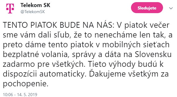 Prostredníctvom sociálnych sietí a webovej stránky operátor informuje, že najbližší piatok zákazníci budú telefonovať, smskovať a dátovať zadarmo.