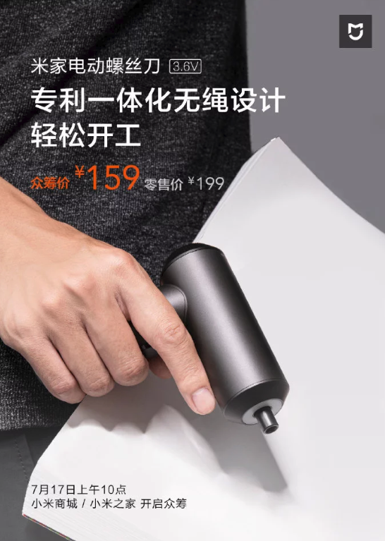 Rovnako ako mnoho produktov spoločnosti aj nový produkt vznikol prostredníctvom čínskej crowdfundingovej kampane. Nový produktom je elektrický skrutkovač, ktorý sa bude predávať pod podznačkou Mijia. V kampani bol produkt veľmi úspešný, kedy zaznamenal až 10 000 objednávok len za dobu 56 minút. Dokonca získal nemecké prestížne ocenenie dizajnu iF Design.