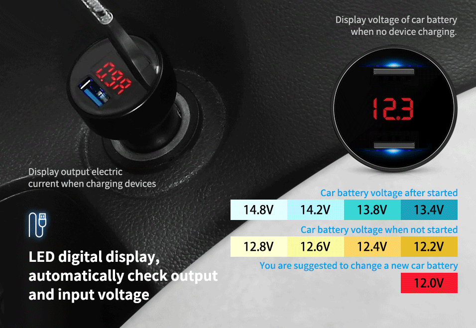 Zahraničný e-shop ponúka so zľavovým kupónom lacnejšie adaptérik do auta. Okrem dvoch portov pre nabíjanie taktiež adaptériku nechýba voltmeter, ktorý zobrazuje napätie batérie vozidla. Ak hodnota klesne pod 12.0 V batériu je potrebné vymeniť, prípadne dobiť. Adaptérik taktiež obsahuje hrot, ktorý slúži pre núdzové rozbitie skla.