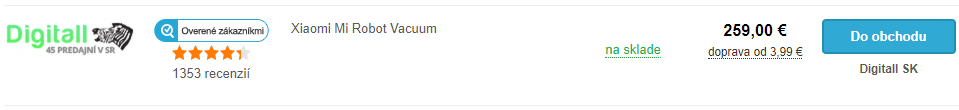 Cena Xiaomi vysávača aktuálne sa pohybuje v cene: 273.56€.