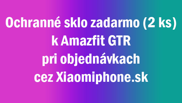- Ochranné sklo zadarmo k AMAZFIT GTR hodinkám platí pre objednávku hodiniek vytvorenú v termíne od 30.07. 2019 12:40 hod. – do termínu 31.08.2019. Sklá zadarmo platia len v uvedenom termíne, rovnako v uvedenom termíne zašlite požiadavku na sklá zadarmo.