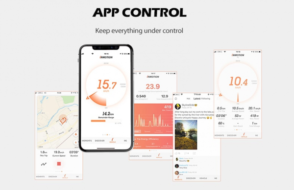 Dopravnému prostriedku INMOTION E2 nechýba aplikácia v smartfóne.