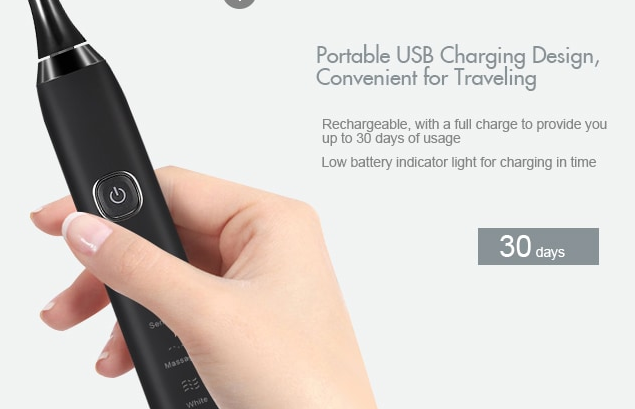 Na kefke je možné nastaviť 5 režimov čistenia zubov, k zubnej kefke v balení sú 2 hlavice navyše. Taktiež stojan s nabíjaním prostredníctvom USB portu. Vďaka batérií s kapacitou 800mAh pri bežnom 2 minutovom čistení zubov udávaná výdrž je až 30 dní.