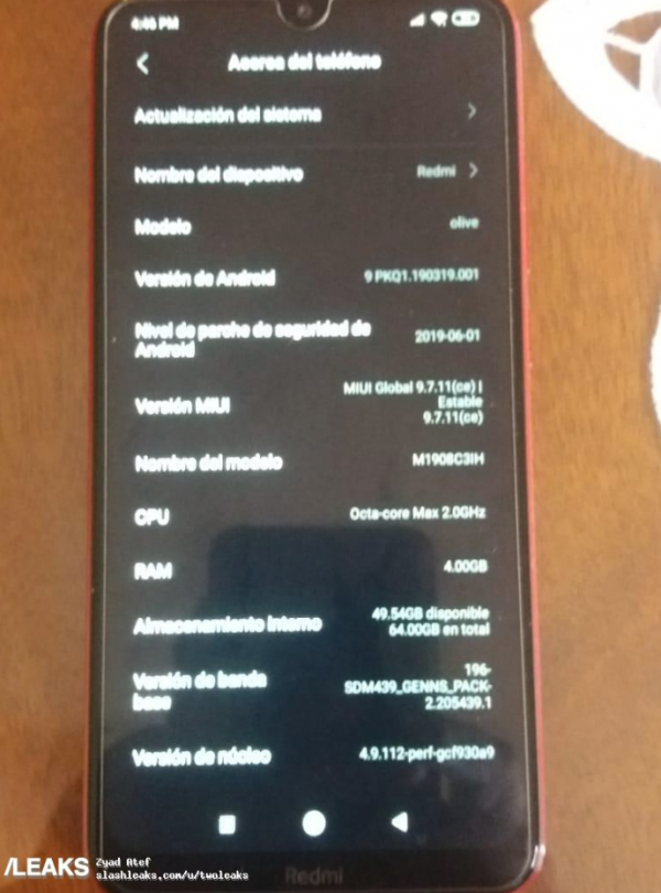 Na spodnej strane prednej strany u nového modelu nebude chýbať aj názov značky Redmi. Pravdepodobne toto bude smartfón Redmi 8A, alebo Redmi Note 8A. Nový model má získať až 64 megapixelový hlavný fotoaparát, snímač otlačkov prstov bude umiestnený na zadnej strane smartfónu. Práve tento model je modelom, ktorý sa objavil v certifikačnom úrade. Jeho procesor má byť Snapdragon 439, alebo by to mohol byť procesor MediaTek Helio G90T. Môžme sa tešiť aj na batériu s kapacitou 5000 mAh.
