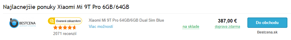 Ceny klesajú, o 72€ lacnejší ako na SVK, 2x sklo: Xiaomi Mi 9T PRO 64GB GLOBAL od 314.52€, na SVK 387€