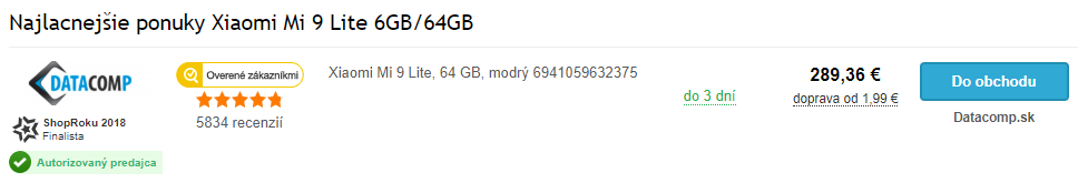 O 64€ lacnejší ako na SVK, 2x sklo: Xiaomi Mi9 Lite 64GB GLOBAL za 226.78€, na SVK 297€