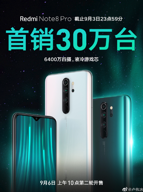 Generálny riaditeľ spoločnosti Redmi Lu Weibing oficiálne potvrdil prostredníctvom čínskej sociálnej siete Weibo, že v prvý deň predaja nový model Redmi Note 8 Pro zaznamenal až 300 000 predaných kusov.