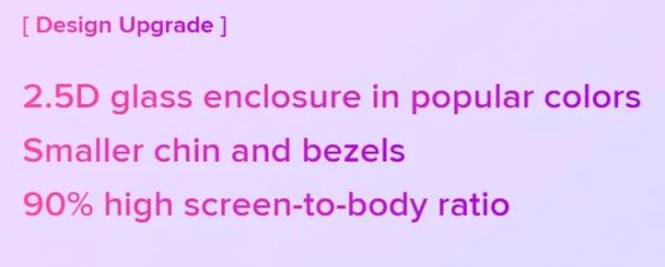 Hlavný fotoaparát smartfón obsahuje 48, 8, 2, 2 megapixelový, predný fotoaparát smartfón obsahuje 13 megapixelový. Kapacita batérie dosahuje úroveň 4000 mAh, s podporou 18W nabíjania prostredníctvom USB C portu. Vďaka novej technológii Smart PA reproduktory smartfónu sú o 40% hlasnejšie. Smartfón obsahuje ochranné sieťky, ktoré zabraňujú aby sa do reproduktorov nezhromažďoval prach.