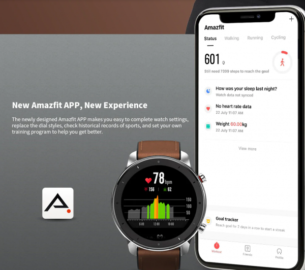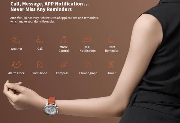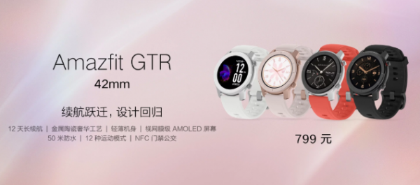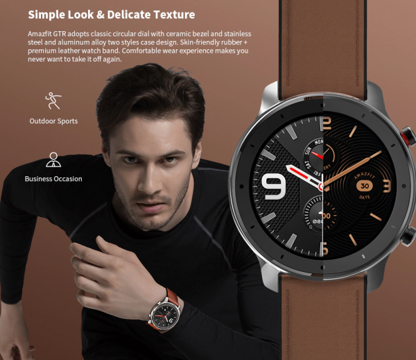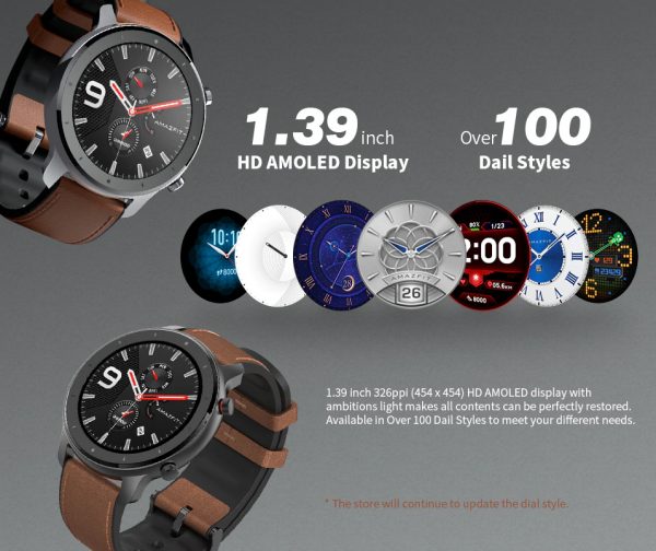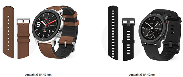 Hodinky Amazfit GTR získavajú displej s priemerom 47 mm s rozlíšením 454 x 454 pixelov, alebo 42 mm s rozlíšením 390 x 390 pixelov. Displej hodiniek je typu AMOLED, ktorého pokrýva sklo Gorilla Glass 3. generácie.