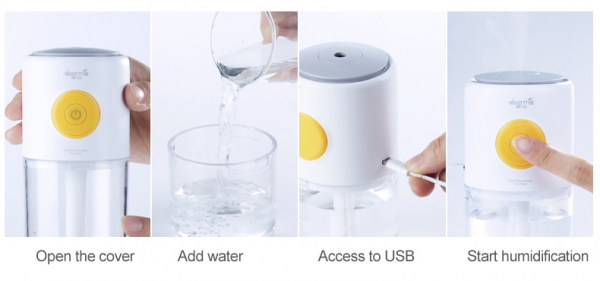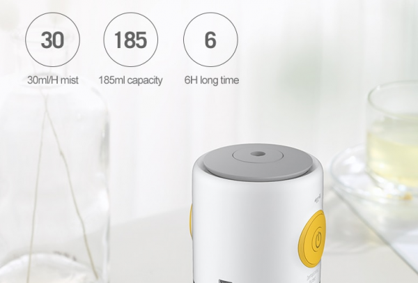 Na trhu sa nachádza aj jednoduchý USB zvlhčovač vzduchu, ktorý je napájaný prostredníctvom USB portu. Kapacita nádobky dosahuje uroveň 185 ml, ktorá je priehľadná a navyše podsvietená. Možné je prepnúť medezi 7 farbami podsvietenia.
