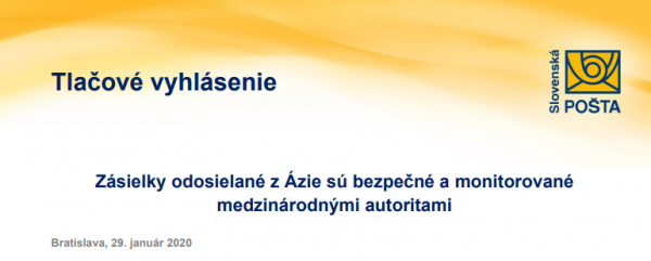 V posledných dňoch internetom sa šíria klebety, že balíčky z Číny niesú doručované do Európy. To však nieje pravda. Pošta v posledných dňoch uviedla, že balíčky niesú odosielané do Číny, to však neplatí pri objednávkach z Číny. Tie sú doručované zákazníkom na Slovensko. Ročne doručí Slovenská pošta viac ako 3 milióny zásielok z Ázie.