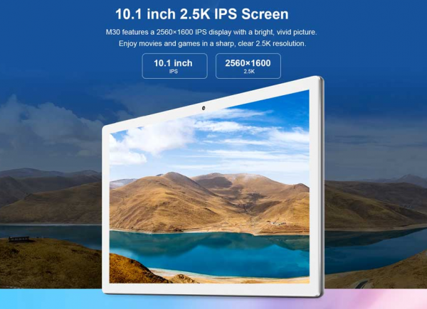 Tablet Teclast M30 získava 10.1 palcový displej s rozlíšením 2K. Procesorom tabletu je Helio X27, nechýba RAM s kapacitou 4GB, interné úložisko s kapacitou 128GB. Nechýba podpora Micro SD kariet až do kapacity 256GB. Tablet obsahuje taktiež GPS modul, slot pre dátovú sim, hlavný fotoaparát tablet obsahuje 5 megapixelový, predný fotoaparát 2 megapixelový. Taktiež obsahuje duálnu Wifi. Na nabíjanie tabletu konečne slúži port typu USB C. Zmeny sa dočkali aj lepšie reproduktory.