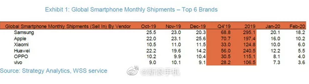 Analytická spoločnosť Strategy Analytics zverejnila rebríček predajnosti smartfónov po celom svete za mesiac február.