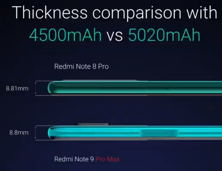 Smartfón získava batériu s kapacitou až 5 020 mAh, v porovnaní so 4 500 mAh batériou v smartfóne Redmi Note 8 Pro, je nový model ešte tenší. Smartfón získava aj podporu až 33W rýchleho nabíjania, kedy smartfón nabijete do 50% kapacity len za 30. minút. Dokonca táto rýchlonabíjačka sa už nachádza priamo v balení. Tento model ako prvým smartfónom značky Redmi, má snímač otlačkov prstov na bočnej strane.