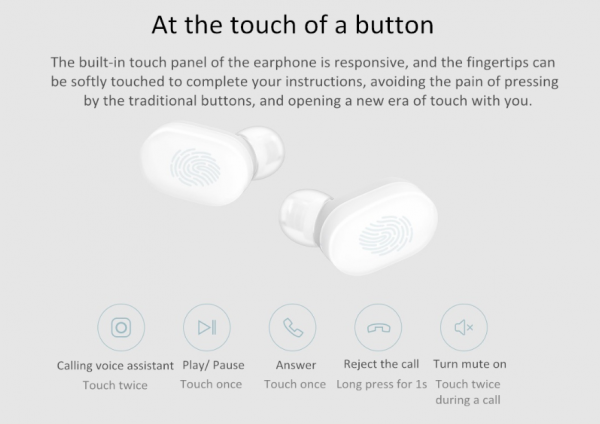 Naopak pri umiestnení do nabíjacej skrinky sa spárovanie s bluetooth zariadením vypne. Taktiež slúchadlá obsahujú dotykové panely z vonkajšej strany pre pozastavenie prehrávania hudby, príjmanie alebo pre odmietnutie hovoru.