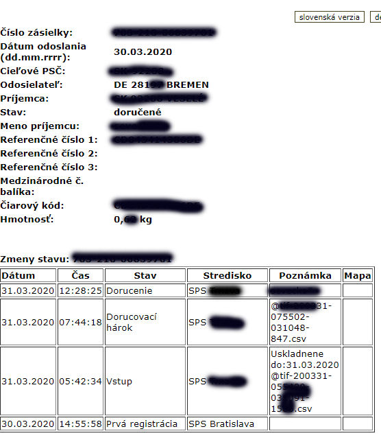 Objednávka bola vytvorená 26. marca, v ten deň bola odoslaná, doručená bola dnes 31. marca. Doručená bola UPSkom z nemeckého skladu.