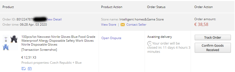 Dňa 3. apríla sme z CZ skladu objednali 3 balenia rukavíc. Rukavice boli o trošku neskôr odoslané, 8.4. 2020. Dnes 17.4. dorazili DPDčkom. Celková doba od odoslania je 9 dní.