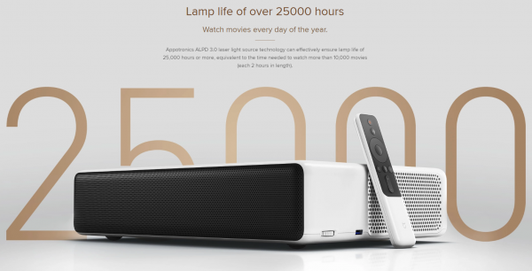 Projektor je vyrobený spoločnosťou Yorkey. Životnosť lasera je až 25 000 hodín, to je skutočne dlhá doba. Ak by ste ho 2 hodiny denne používali, pri udávanej živostnosti by vydržal 34 rokov. Spoločnosť Xiaomi vynaložila veľké úsilie pre predĺženie tejto živostnosti. Svietivosť je až 5000 lúmenov, vďaka ktorej je obraz jasný a krajší oproti konkurencií. Projektor tiež obsahuje 4 vysoko kvalitné reproduktory. Projektor dokáže zobraziť obraz až do neuveriteľnej uhlopriečky 381cm.