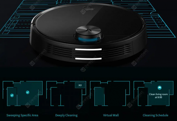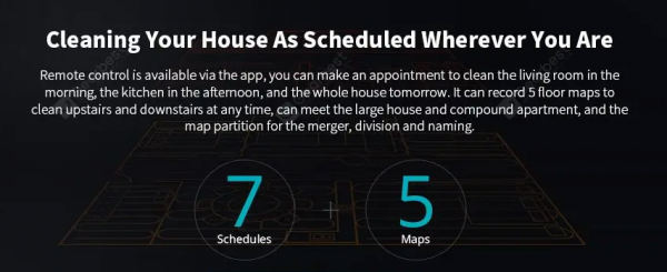 Dokonca si aj zapamätá mapy až 5 poschodí. Možné je samozrejme vybrať miestnosti, ktoré má vysávať, alebo len časť miestností, rovnako aj nastavovanie časov, kedy.