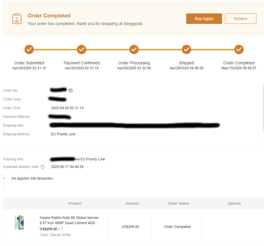 28. apríla sme z Banggoodu z čínskeho skladu objednali smartfón Redmi Note 9S, so zámerom presvedčiť sa, či EU Priority Line poštovné aj po aktuálnej celosvetovej situácii funguje bez problémov.