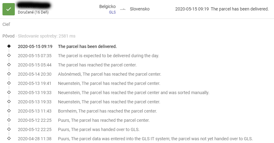 Balík dorazil včera 15.5. GLS kuriérom, bez zastavenia colnicou, priamo k zákazníkovi, bez platenia ďalších poplatkov navyše. Odoslaný balík z e-shopu bol 29. apríla, celková doba dodania od odoslania bola 16 dní. Doby dodania bývajú mnoho krát aj rýchlejšie, z predošlých skúseností to bolo 5, aj 7 dní od odoslania. Aj okolo 12, 14 dní od odoslania.