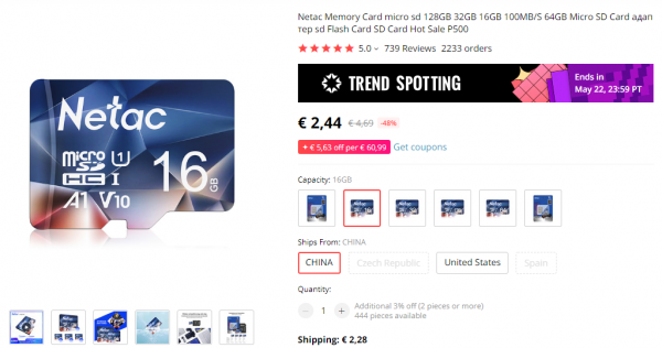 Cena 64GB verzie s veľkým prevodníkom v cene 8.98€.