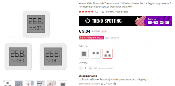 Jeho cena sa pohybuje na úrovni 9.04€ v počte 3 ks. (3.01€ / ks). Poštovné je v cene 2.63€.