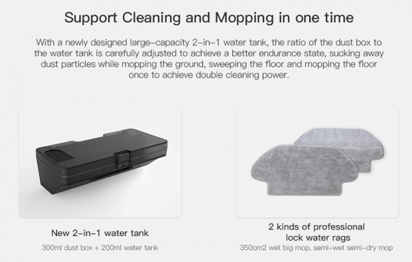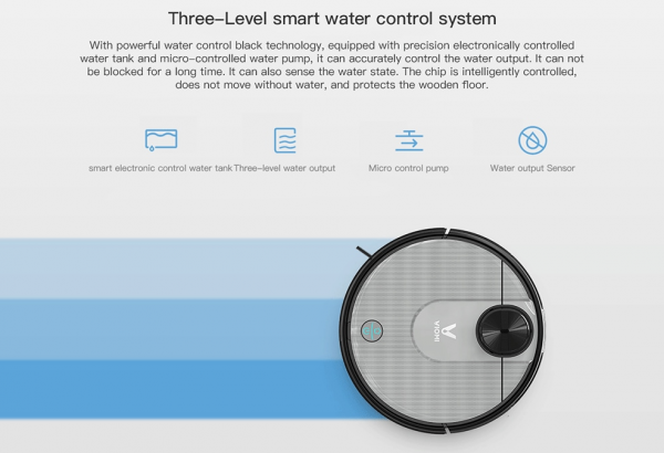 Pracovný čas je na úrovni až 130. minút na jedno nabitie. Nechýba aj detekcia koberca. Samozrejmosťou je možnosť párovania s aplikáciou. Vysávač prechádza aj cez prahy dverí, až do výšky 2 cm. Dokonca vysávač obsahuje snímač nádržky na vodu. V aplikácii v smartfóne nechýba monitorovanie trasy vysávania, možnosť výberu lokality pre vysávanie – prostredníctvom aplikácie nastaviť, kde vysávač nemá vysávať.