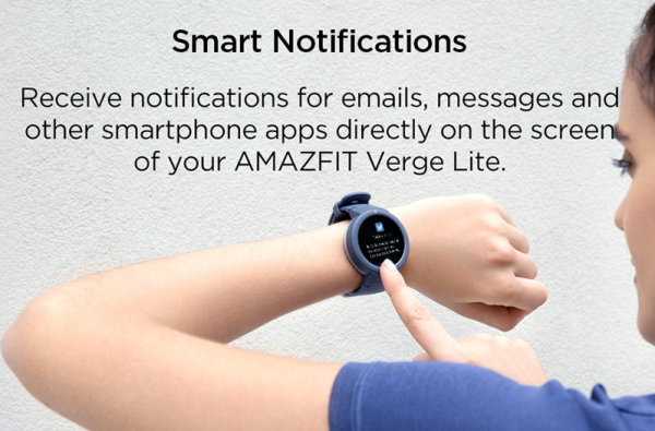 Nové hodinky Amazfit Verge Lite získavajú 1.3 palcový OLED displej s priemerom 43mm, s rozlíšením 360×360 pixelov, nechýba certifikácia IP68, kedy hodinkám neuškodí plávanie. U nových hodiniek snímač tepu získava nízkoenergetický režim, kedy aj pri každodennom používaní snímača tepu je možné dosiahnuť skvelú výdrž hodiniek na jedno nabitie. Výdrž hodiniek bola zvýšená až na 20 dní. Samozrejmosťou je monitorovanie spánku, notifikácie, merač tepu.