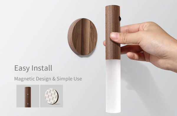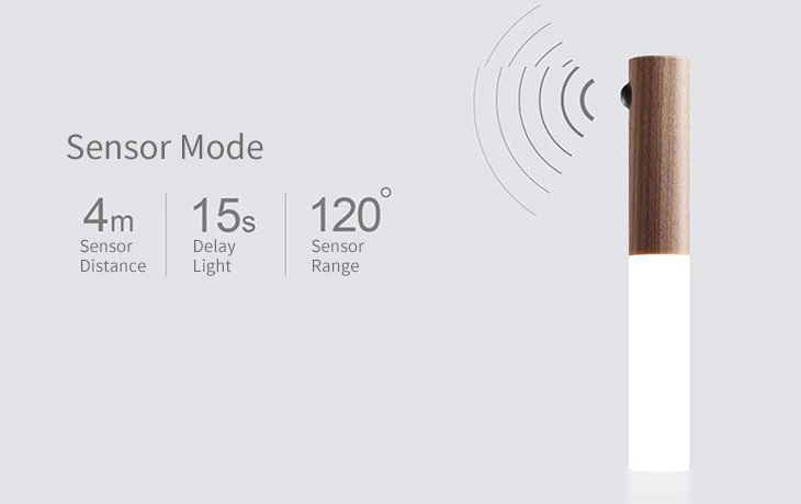 Svetlo zostáva zapnuté 15 sekúnd, následne sa svetlo zhasne – ak nie je detekovaný žiadny pohyb. Dosah senzoru je na úrovni 4 metrov. Svetlo je možné pripnúť napr. na stenu obojstrannou páskou, ktorú obsahuje držiak, ktorý je v balení. Svetlo je možné používať aj ako nočné svetlo na stolík. Nechýba integrovaná nabíjacia 500 mAh batéria. Poslúži aj ako núdzové svetlo. Rám je vyrobený z dreva.