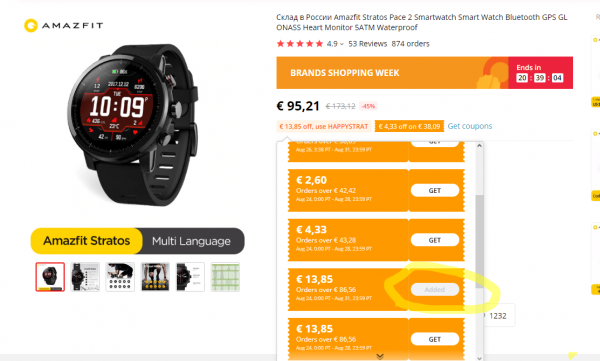 Luxusná cena v EU sklade vďaka Ali kupónu: Amazfit Pace 2 (Stratos Pace 2) len 67.51€ z pôvodných 95.21€