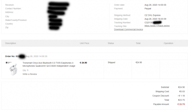 Z Geekbuying sme z českého skladu objednali 28. augusta Tronsmart Onyx Ace slúchadlá, ktoré naozaj prekvapili veľmi kvalitným zvukom.