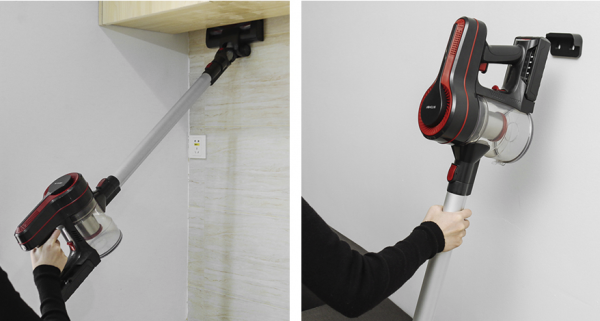Pri základom režime vydrží 35. minút používania, pri silnejšom režime je to 20. minút používania. Obrovskou výhodou je možnosť upevnenia nabíjacej stanice na stenu, kedy vždy pred začatím vysávania vysávač je plne nabitý.