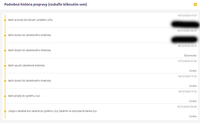 Kuriérska spoločnosť GLS balík prebrala všetky balíky 16. novembra.