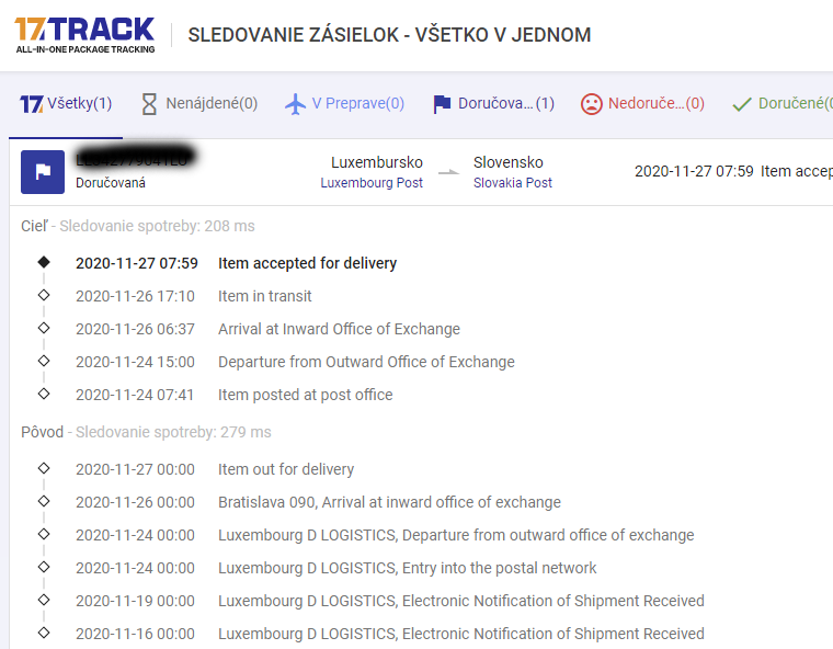 Dnes 27. novembra balík bol doručený bez zastavenia colnicou, DPDčkom.