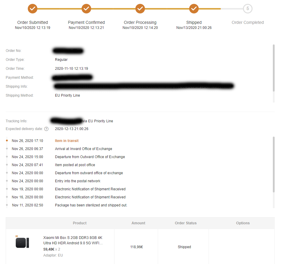 10. novembra sme z Banggoodu objednali 2 ks Xiaomi Tv boxu.