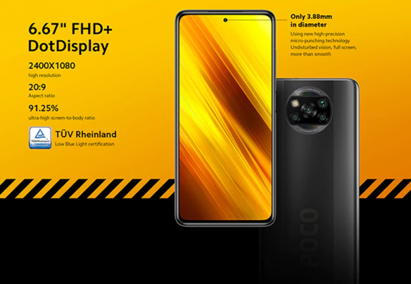Xiaomi Poco X3 obsahuje 6.67 palcový IPS displej s rozlíšením 2400 x 1080 pixelov, s obnovovacou frekvenciou až 120 Hz. Displej pokrýva až 91.25% prednej plochy, aj vďaka veľmi malej kamerke na prednej strane. Procesorom nového smartfónu je nový Snapdragon 732G, nechýba RAM s kapacitou 6GB, interné úložisko s kapacitou 64GB alebo 128GB. Nechýba batéria s kapacitou 5160 mAh, s podporou 33W nabíjania. Smartfónu dokonca nechýba špeciálne chladenie LiquidCool Technology 1.0 Plus. Obsahuje aj špeciálny gerný režim Game Turbo 3.0. Hlavný fotoaparát smartfón obsahuje 64, 13, 2, 2 megapixelový, zatiaľ čo predný fotoaparát obsahuje 20 megapixelový. Nechýba mu NFC pre bezkontaktné platby, infračerevený port, či 3.5 mm audio jack. Reproduktory sú duálne, nechýba im certifikácia Hi-Res Audio. Obsahuje ja slot pre Micro SD kartu (1+1 SIM, alebo 1 SIM + 1 Micro SD karta).