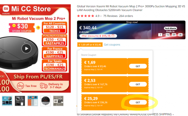 Na stránke produktu nezabudnite aplikovať zľavu, kedy cena klesne na hodnotu: 315.15€. Poštovné je zadarmo. Keďže sa produkt nachádza v EU sklade, ďalšie poplatky navyše pri doručení neplatíte. Tip: Z EU krajín nikdy nebudeš platiť colné poplatky, prečo je to tak? Poznáme odpoveď.