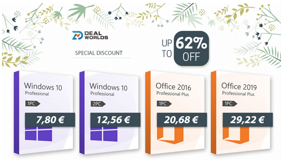 V spolupráci so zahraničným populárnym e-shopom Dealworlds.com prinášame exkluzívne licencie na Windows Office a Windows 10.