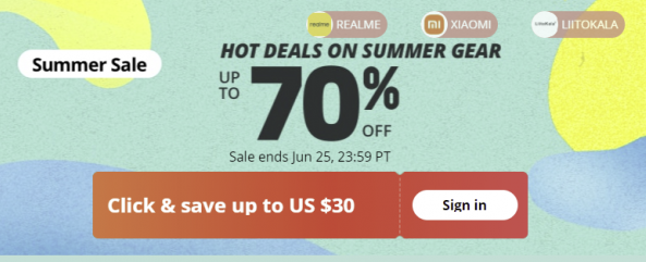 Aliexpress dnes spustil letné výpredaje. Nechýbajú zľavové kupóny. Výpredaje končia 26.6. o 08:59 hod.
