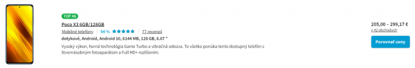 Cena v slovenských e-shopoch sa pohybuje na úrovni od 205€, ušetríte tak 37€.
