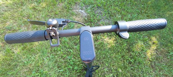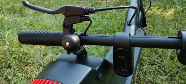 Na riadidlách nechýba brzdová páka, zvonček, tlačidlo pre akceleráciu.