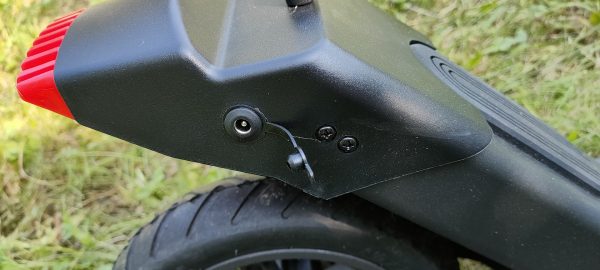 Kolobežka sa nabíja cez konektor na zadnom blatníku.