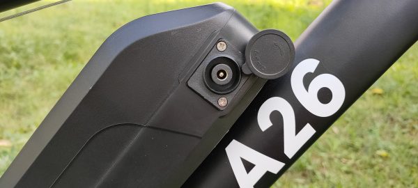 Batéria sa nachádza v strede rámu, v balení sa nachádzajú aj 2x kľúče, prostredníctvom ktorých je možné batériu demontovať.