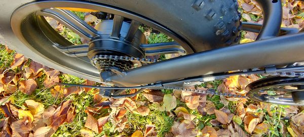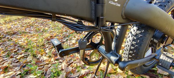 E-biku nechýbajú kvalitné prehadzovače spoločnosti Schimano, prevodov je 7.