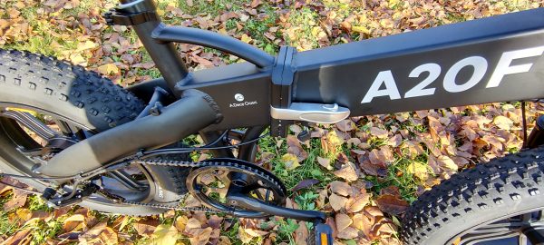Batéria sa nachádza v strede rámu, v balení sa nachádzajú aj 2x kľúče. Kľúčom sa e-bike zapína zo spodnej strany.