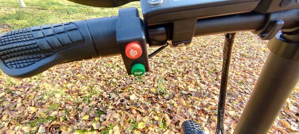 Na riadidlách e-bike obsahuje tlačítko pre spustenie svetiel, tlačítko pre klaksón.